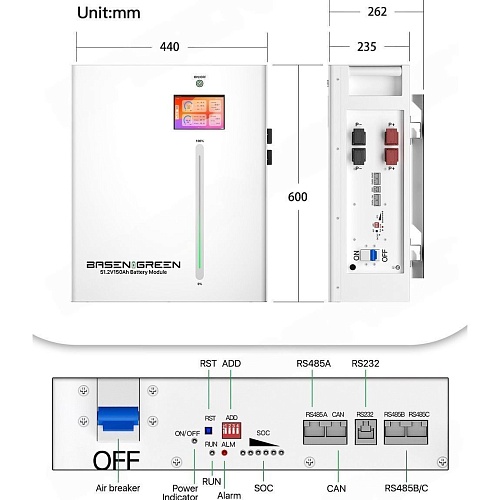 Акумулятор Basen Green LiFePO4 48V (51.2V/150Ah/7680Wh) (BR-WM-LV-7.68KWH)