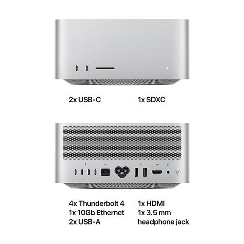Роз'єми та порти | 4x Thunderbolt 4 (up to 40Gb/s) (DisplayPort, USB 4, USB 3.1 Gen 2) / 2x USB‑A ports (up to 5Gb/s) / 1x HDMI port / 1x 10Gb Ethernet / 1x 3.5mm headphone jack |