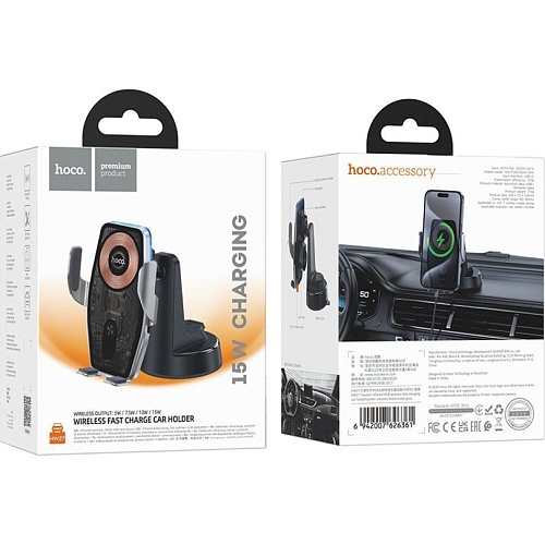 Автотримач із бездротовою зарядкою Hoco HW27 Traveler Black Metal Gray