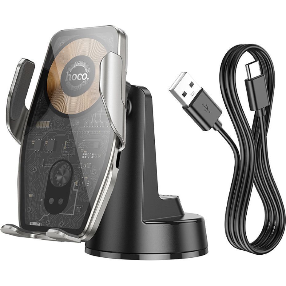 Автотримач із бездротовою зарядкою Hoco HW27 Traveler Black Metal Gray