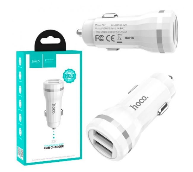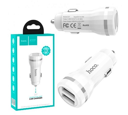 Автомобільний зарядний пристрій Hoco Z27 Car Charger 2USB 2.4A (White)