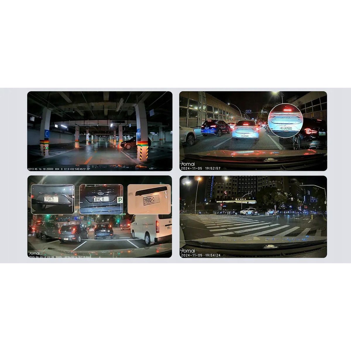Завдяки світлосильній діафрагмі F1.55, підтримці HDR та фірмовому алгоритму Super Night Vision нічні записи виглядають чіткими та природними. Камера ефективно працює в тунелях, на неосвітлених заміських дорогах і під час нічних поїздок. Поліпшена обробка світла та тіней дозволяє зберігати видимість навіть за мінімального освітлення.