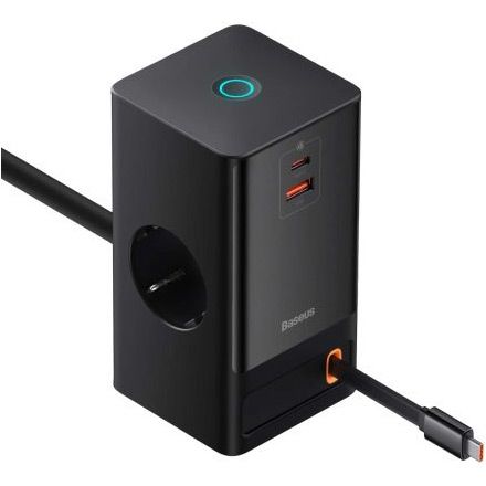 Мережевий зарядний пристрій Baseus PowerCombo Digital PowerStrip 2AC+1U+1C+Retractable-C 65W Black (PSLR000301) EU