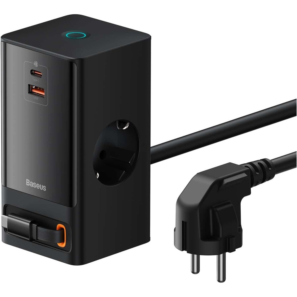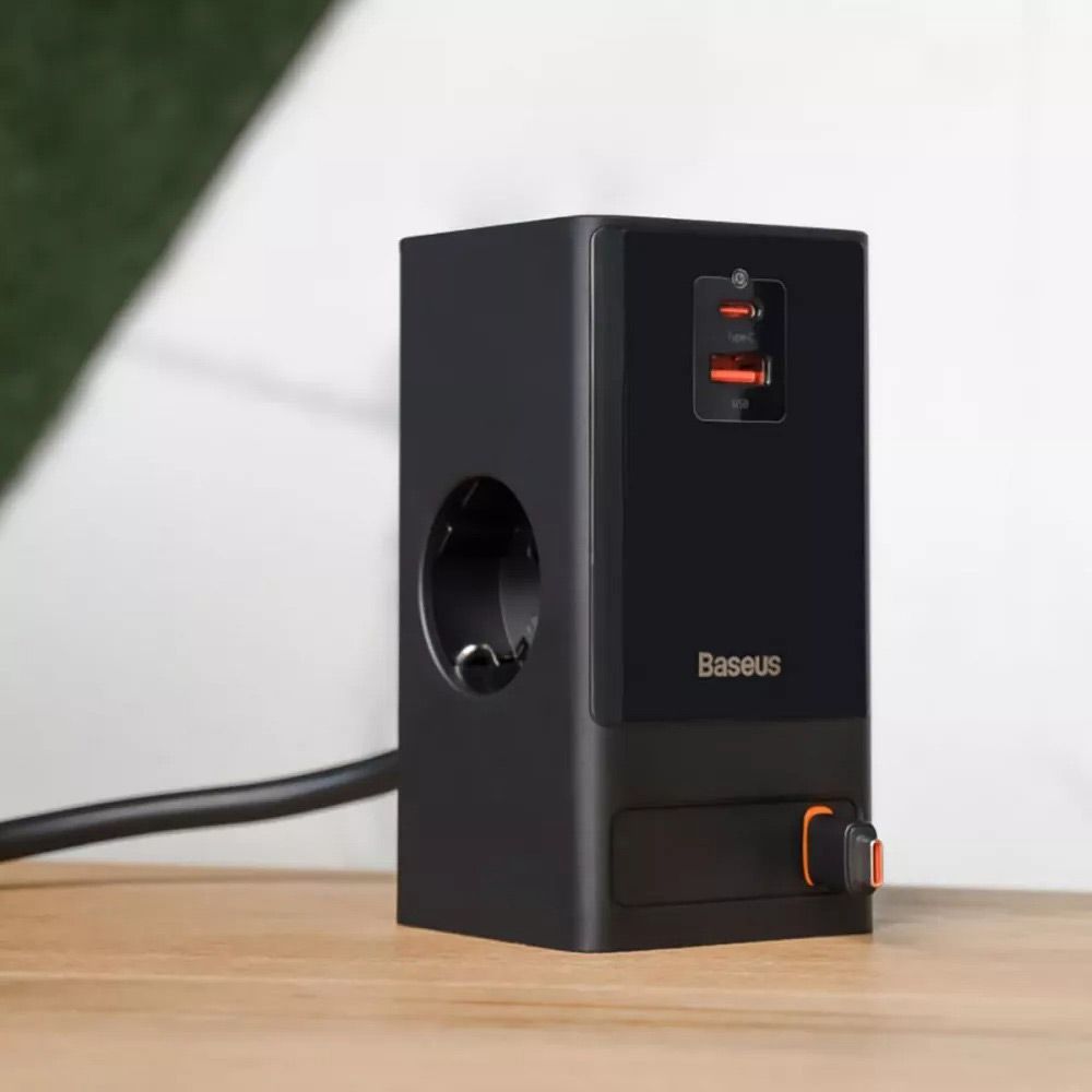 Мережевий зарядний пристрій Baseus PowerCombo Digital PowerStrip 2AC+1U+1C+Retractable-C 65W Black (PSLR000301) EU