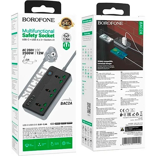 Мережевий фільтр Borofone BAC2A Leya Black (6941991111440)