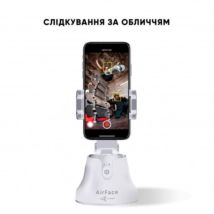 Розумний тримач для AirFace автоматично відстежує обличчя та об'єкти в русі, коли ви знімаєте відео або ведете пряму трансляцію. Розумний гаджет з поворотом на 360 ° допоможе створити професійний відеоконтент не звертаючись за допомогою оператора. Це ідеальний помічник для створення своїх вологів, стриму та іншого відео/фото контенту.