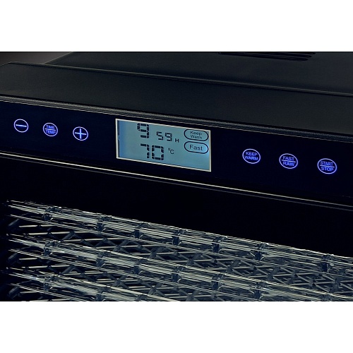 Завдяки 8 рівням температурного режиму від 35°С до 70°С, ви можете точно налаштувати процес сушіння для різних типів продуктів. Два попередньо встановлені режими, FAST і RAW, спрощують вибір оптимального налаштування, а функція KEEP WARM забезпечує автоматичну підтримку оптимальної температури після завершення процесу сушіння.