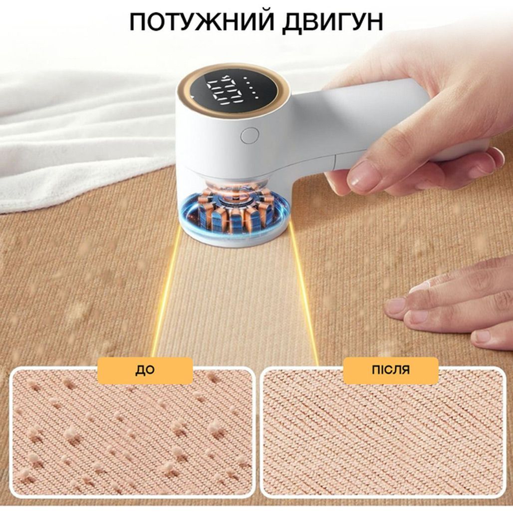 Комплектація | Машинка для видалення катишків • кабель USB-A - USB-C • леза 2 шт • щітка для чищення • документація |