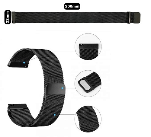Універсальний ремінець DK Metal Milanesse Loop Magnetic Band для Huawei, Samsung, Xiaomi 22mm Grey