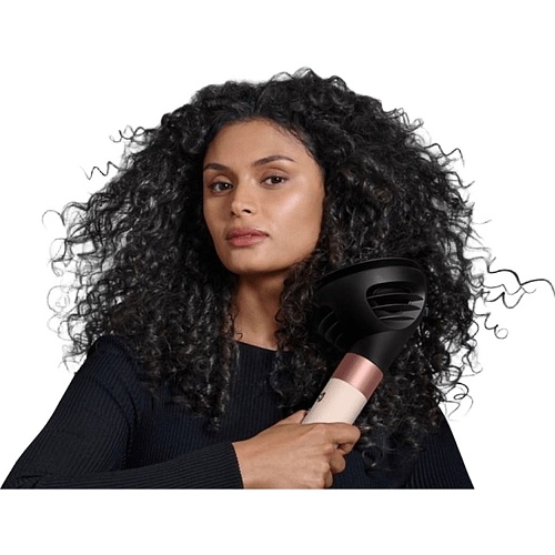Мультистайлер Dyson Airwrap призначений для сушіння, завивки, випрямлення та створення об'єму без агресивного впливу високої температури. Технологія Airwrap заснована на ефекті Коанда, завдяки якому потік повітря м'яко притягує і обертає пасма навколо насадки, зберігаючи структуру волосся. Інтелектуальна система контролю нагріву підтримує безпечну температуру, а потужний двигун забезпечує стабільну і ефективну роботу. У комплект входять насадки для різних типів укладання, включаючи конічний циліндр і насадку для швидкого сушіння, а кілька температурних і швидкісних режимів, холодний обдув і функція іонізації дозволяють адаптувати процес під індивідуальні особливості волосся і домогтися салонного результату в домашніх умовах.