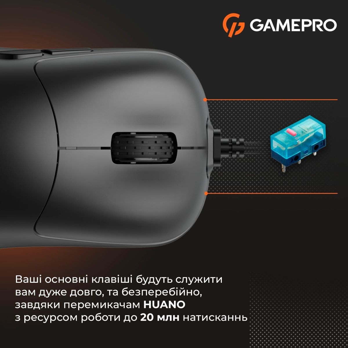 Перемикачі миші розраховані на ресурс у 20 мільйонів натискань, що гарантує довгу та стабільну роботу пристрою. Ви можете бути впевнені, що навіть за інтенсивної експлуатації миша не підведе вас у найважливіші моменти. Крім того, в комплекті з мишею йде додатковий набір глайдів, які забезпечують плавне і безшумне ковзання. Це дає змогу зберегти ідеальні ігрові умови навіть після тривалого використання.