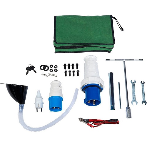 | Комплектація | Генератор • ключ запалювання 2шт. • свічковий ключ • кабель постійного струму з затискачами • вилка 3шт. • гайковий ключ 2шт. • транспортувальні колеса 2шт. • транспортувальні ручки 3шт. • набір монтажних гвинтів • воронка • чохол для інструментів • документація |