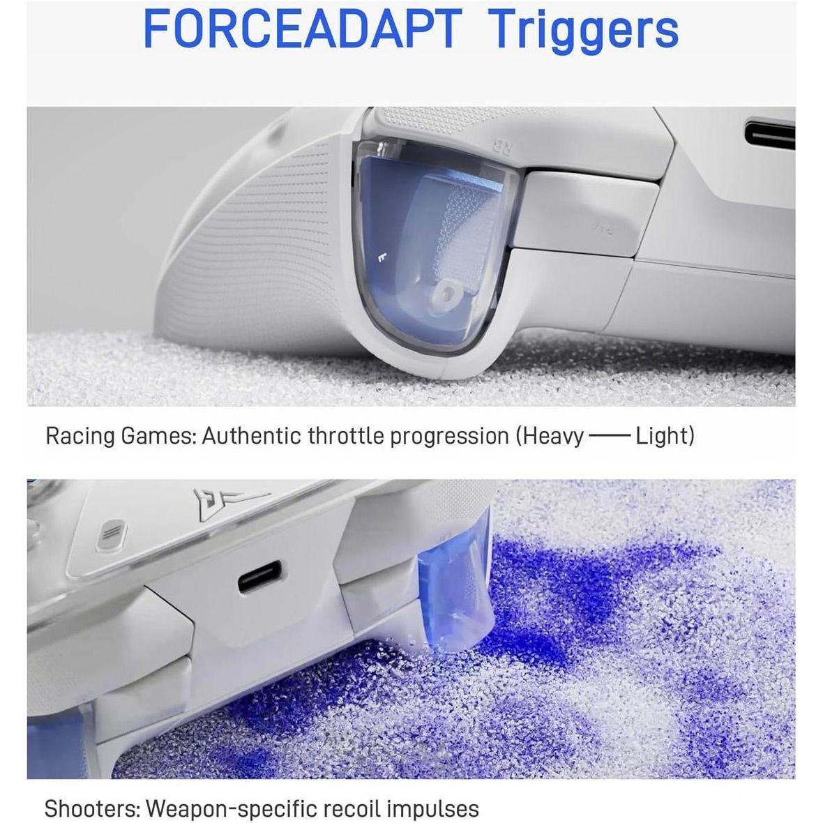 Ще однією ключовою інновацією Flydigi Apex 5 є його Force-Transfer структура. Цей передовий механізм забезпечує зворотний зв'язок на спускових гачках, що дарує більш захоплюючий і реалістичний ігровий досвід. Наприклад, коли ви натискаєте на спусковий гачок у стрілецьких іграх, ви відчуєте опір і вібрацію, що імітує реальні дії, роблячи кожен постріл більш вражаючим. Ця функція особливо корисна в іграх, де важлива чутливість спускових гачків, таких як гоночні чи екшн-ігри. Force-Transfer структура гарантує, що ваші дії будуть не лише точними, а й відчуватимуться природно і інтуїтивно.