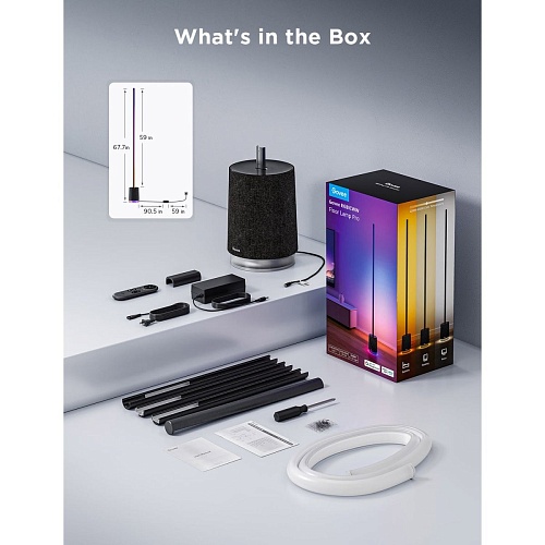 | Комплектація | Підлогова лампа • пульт дистанційного керування • викрутка • набір кріплень • адаптер живлення • кабель живлення • документація |