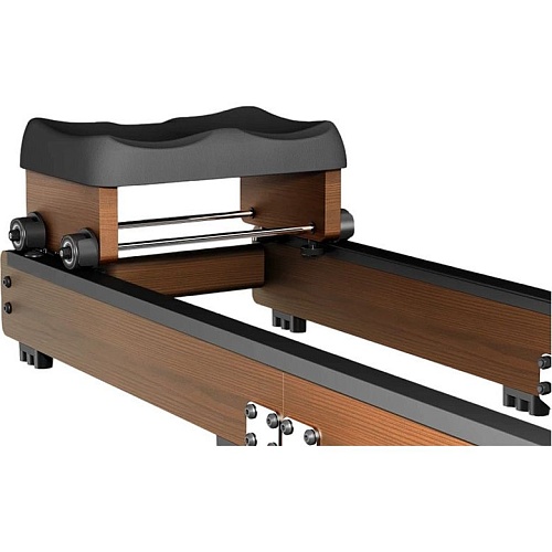 Тренажер розрахований на максимальне навантаження до 150 кг і оснащений подовженою рейкою довжиною 125 см, що робить його зручним для користувачів різного зросту. Широка рукоятка, збільшені підніжки з регулюванням розміру педалей і м'яке сидіння забезпечують стабільне положення тіла і комфорт навіть при тривалих тренуваннях. Така ергономіка допомагає зосередитися на техніці та інтенсивності веслування без зайвого напруження.
