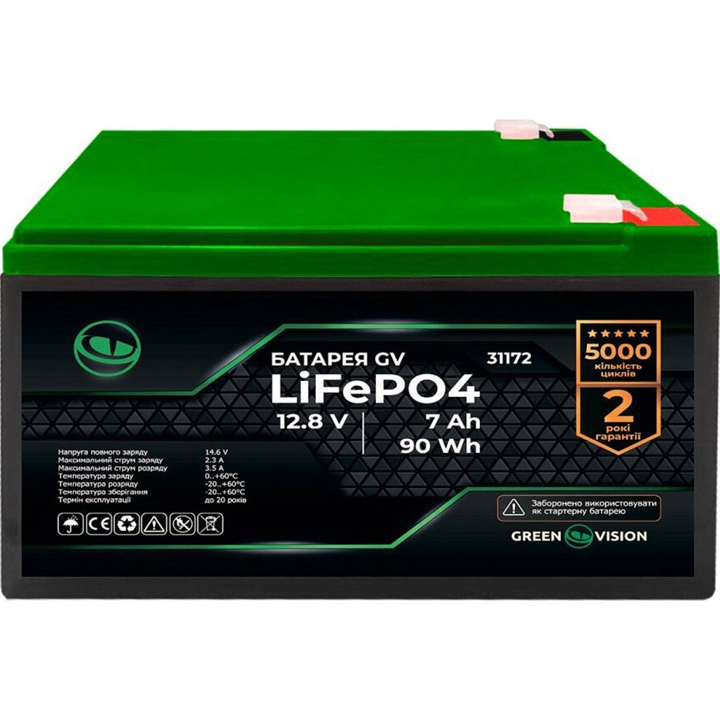 Акумулятор GreenVision LiFePO4 12V (12.8V/7Ah/89.6Wh) (31172)