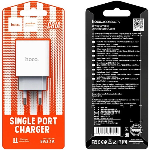 Мережевий зарядний пристрій Hoco C81A Asombroso White (27930)