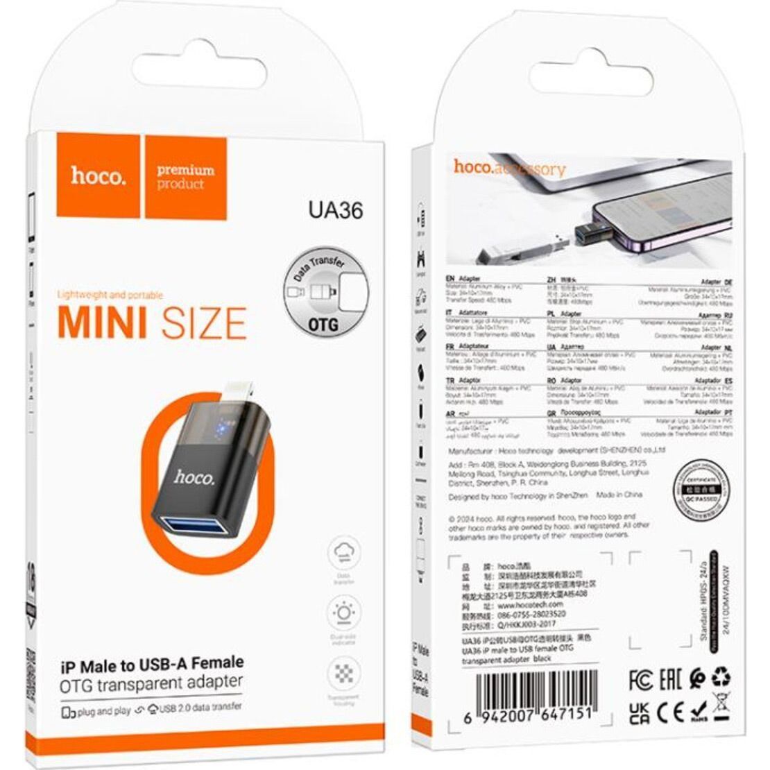 Перехідник Hoco UA36 Lightning Male to USB-A Female OTG Black