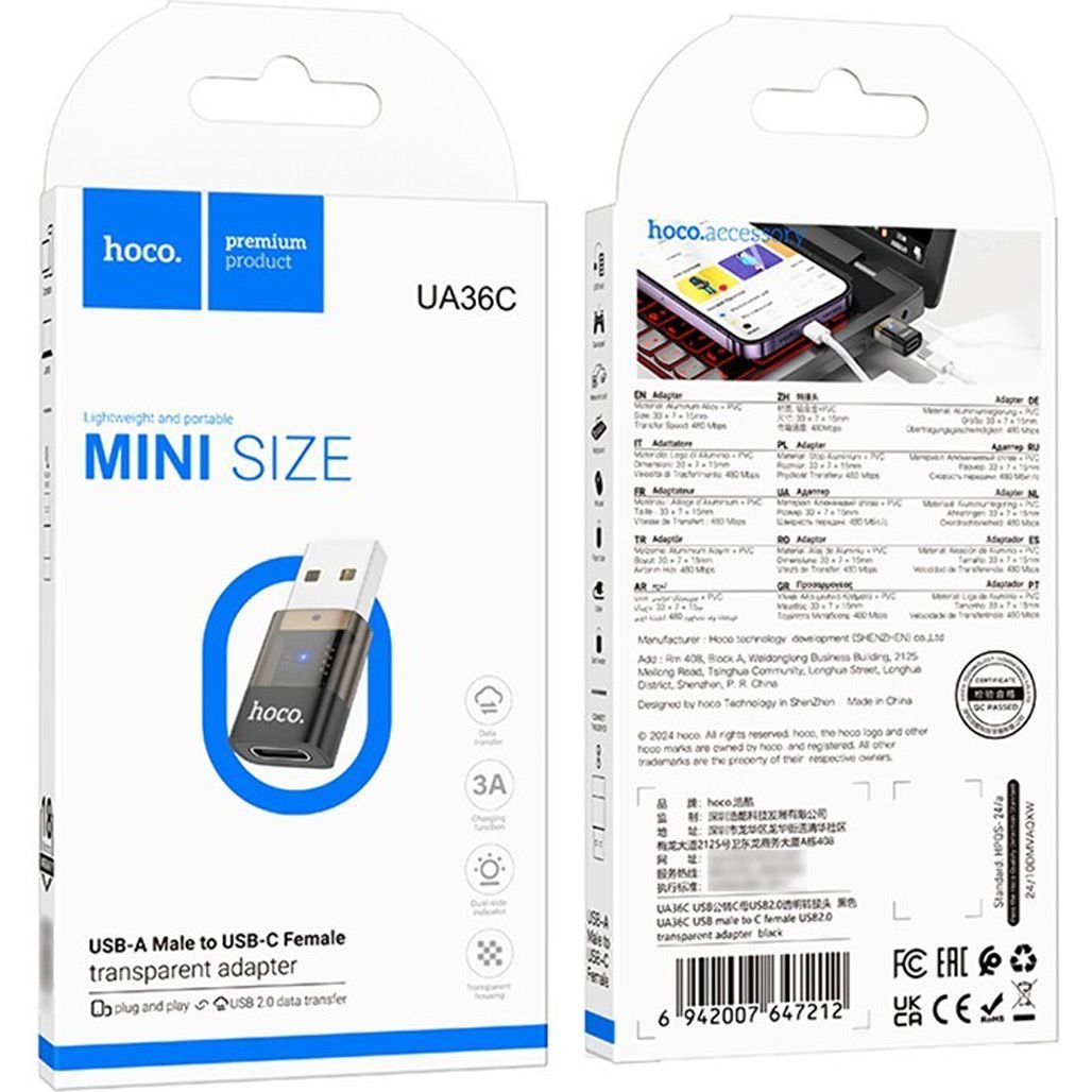 Перехідник Hoco UA36С USB-A Male to USB-C Female OTG Black