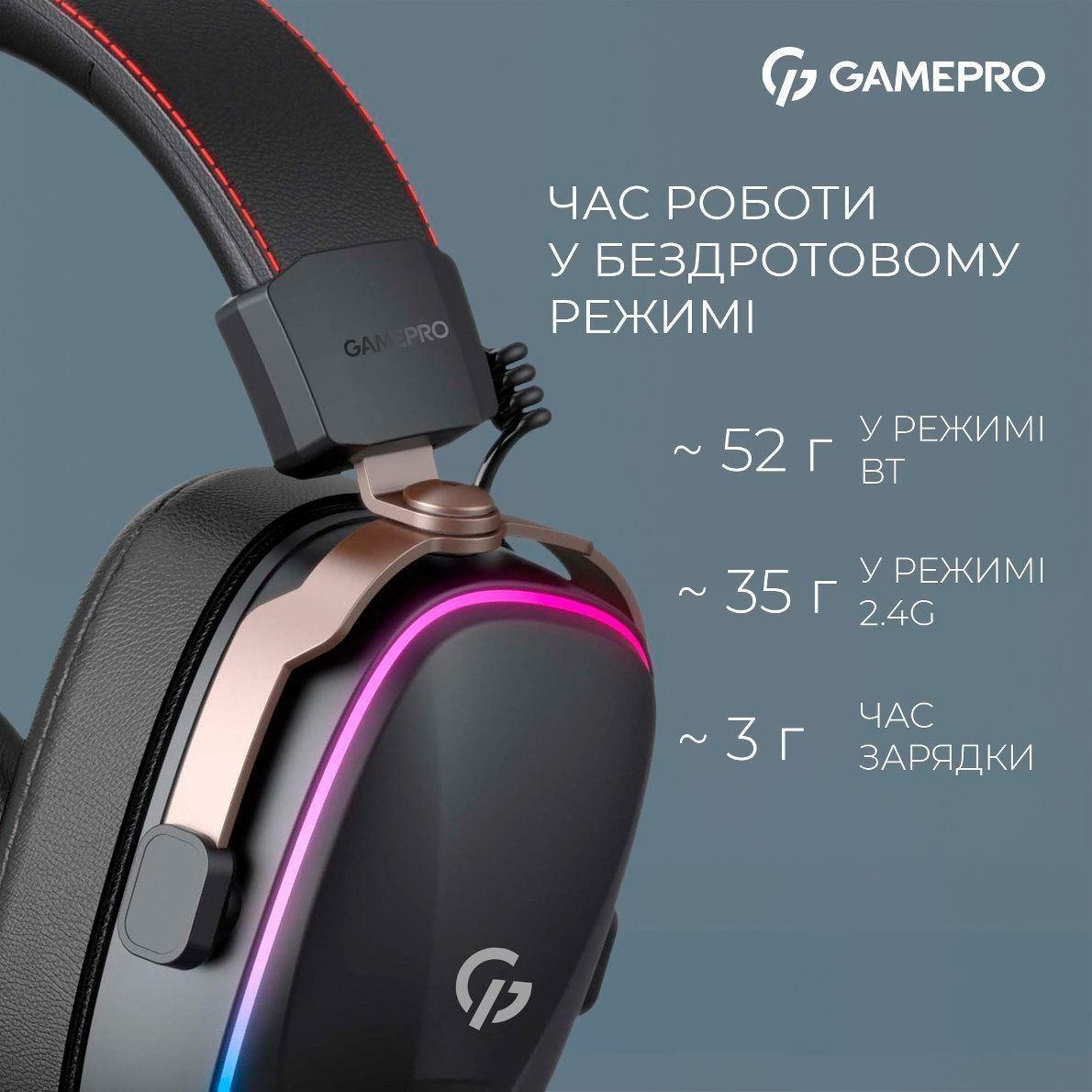 Завдяки вбудованому акумулятору навушники працюють до 35 годин по радіоканалу і до 52 годин в Bluetooth-режимі. Повна зарядка займає всього 3 години. Гарнітура оснащена знімним кабелем довжиною 2,2 м і прямим штекером, що робить її придатною для будь-яких сценаріїв використання — від стаціонарного геймінгу до мобільного стрімінгу.