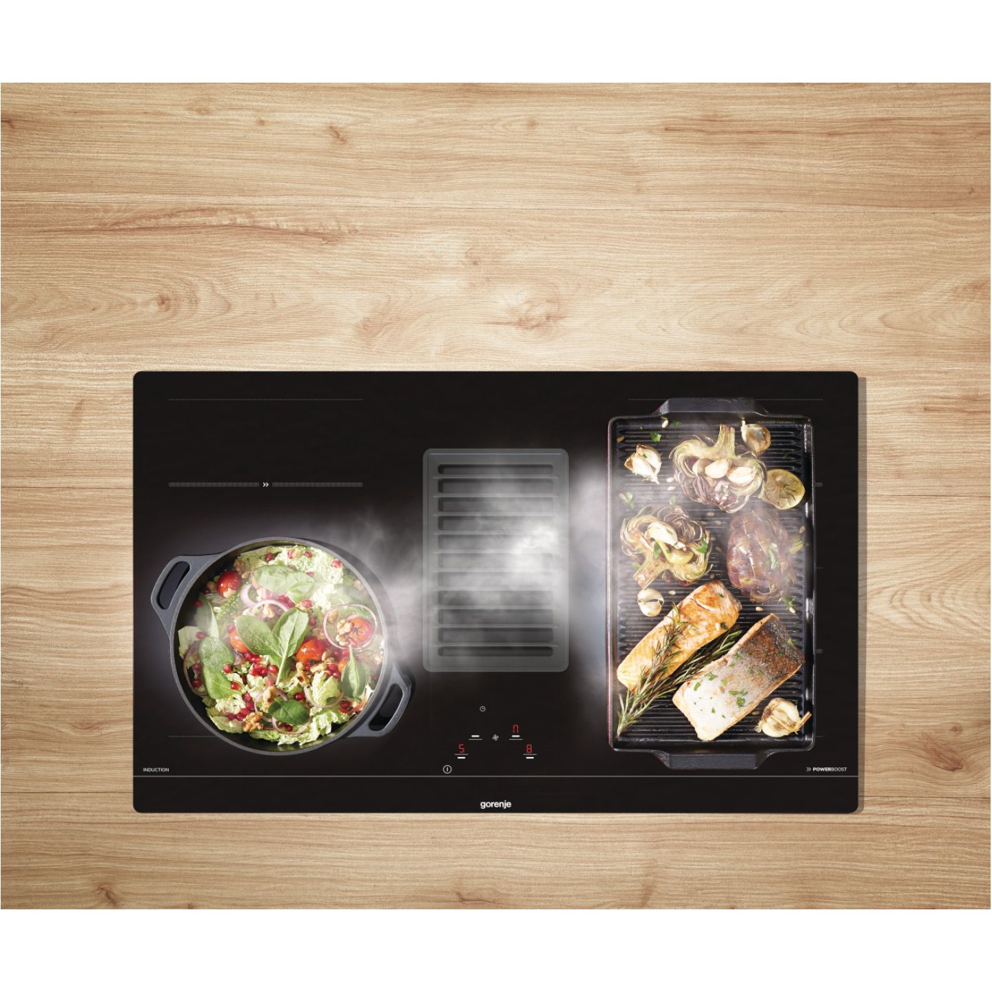 Дві вертикальні варильні зони, можуть бути поєднані в одну, утворюючи надзвичайно велику площу за допомогою функції AreaFlex. Це сприяє рівномірному приготуванню страв у великих каструлях чи пательнях.