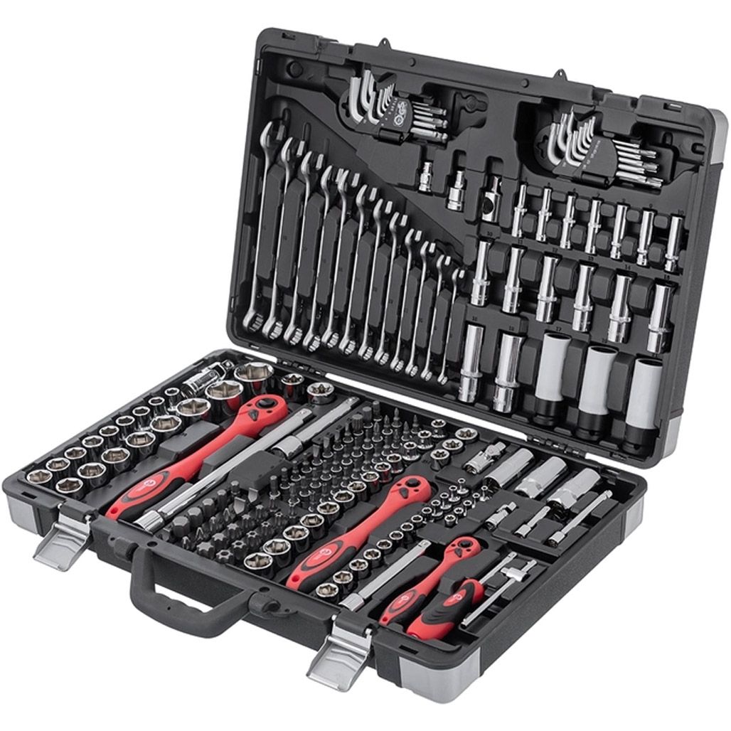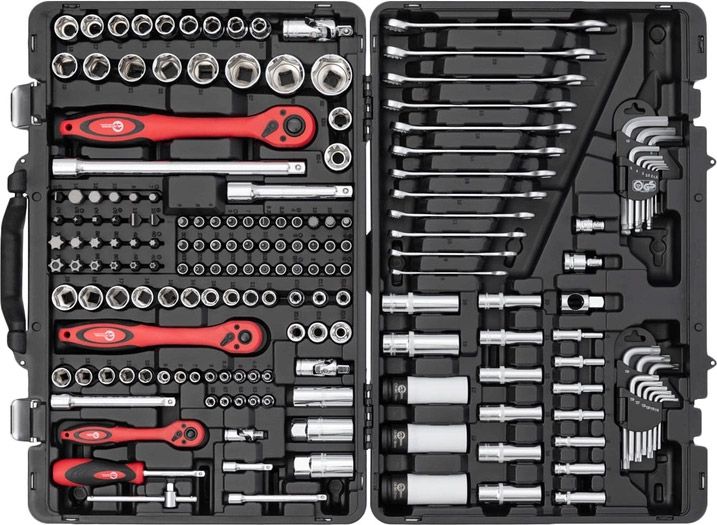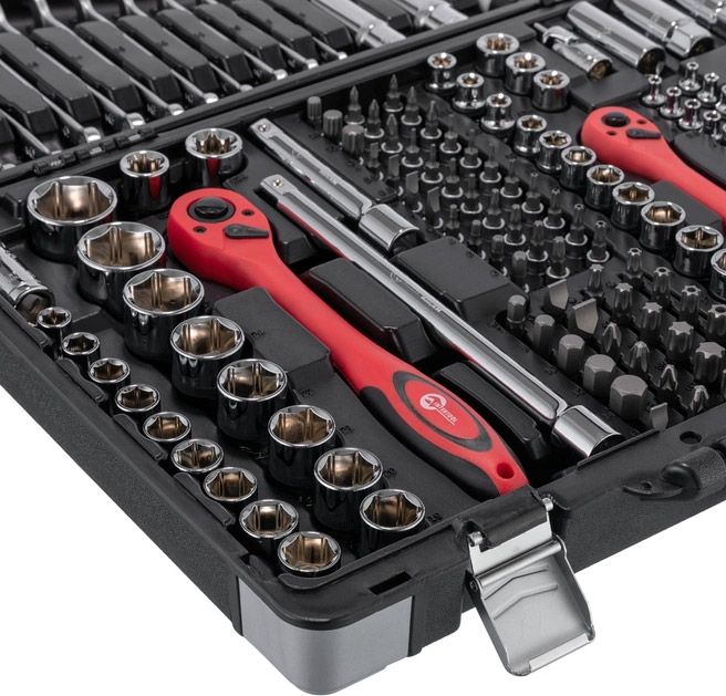 | Предмети в наборі | Ключ-тріскачка, Біти, Торцеві головки, Головки-біти, Шестигранні ключі, Тримач для головок і біт |