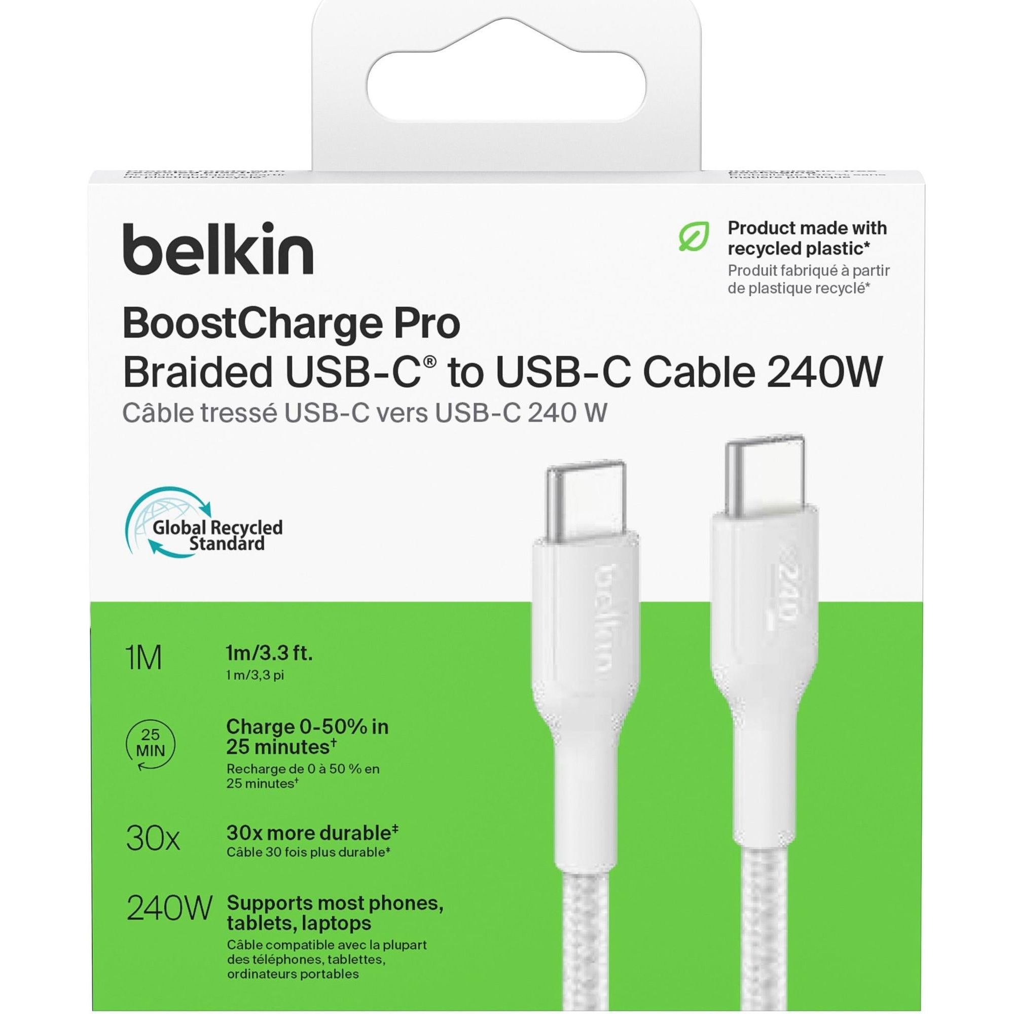 Кабель Belkin Boost Up Charge Pro Braided USB-C to USB-C 240W 1m White (CAB025HQ1MWH)