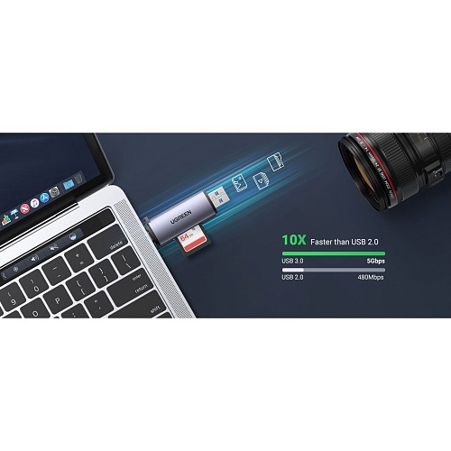 Завдяки інтерфейсу USB 3.0 кардрідер Ugreen CM185 забезпечує швидкість обміну даними до 5 Гбіт/с, що у 10 разів перевищує можливості стандарту USB 2.0. Це дозволяє передавати файли великого обсягу, наприклад відео або фотографії високої роздільної здатності, всього за кілька секунд. Підтримка одночасного зчитування двох карт — SD і microSD — підвищує продуктивність, усуваючи потребу в постійному відключенні та перемиканні носіїв. Така ефективність особливо зручна при роботі з великими обсягами мультимедійних даних.