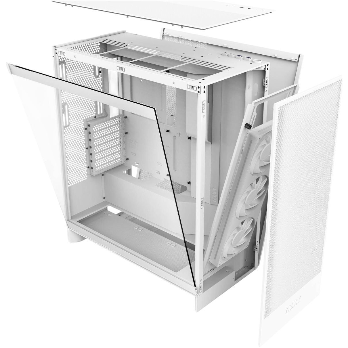 Корпус NZXT H7 Flow орієнтований на сучасні продуктивні збірки, де ключову роль відіграє ефективне охолодження і продумана компоновка компонентів. Класичний форм-фактор Mid-Tower доповнений переробленою внутрішньою архітектурою з вертикальним розміщенням блоку живлення, що звільняє простір в нижній частині корпусу і покращує циркуляцію повітря. Таке рішення дозволяє встановлювати потужні комплектуючі без збільшення габаритів корпусу і зберігати строгий, акуратний зовнішній вигляд.