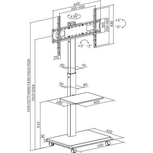 | Стандарт VESA | 200x200, 300x200, 300x300, 300x400, 400x200, 400x400, 400x600 |