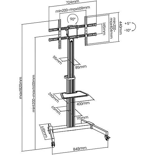 | Стандарт VESA | 200x200, 300x200, 300x300, 400x200, 400x300, 400x600, 600x400 |