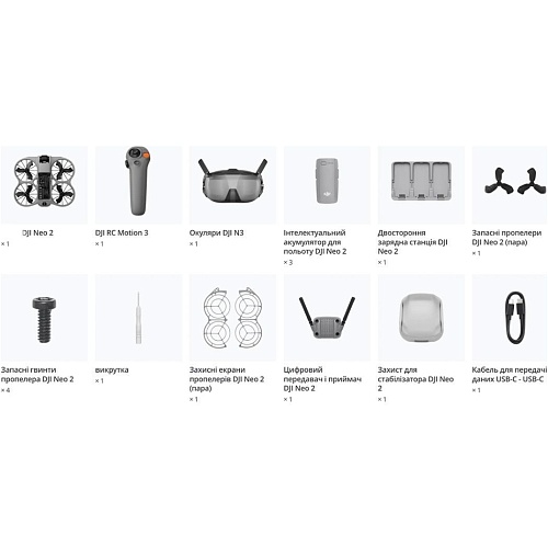 DJI Neo 2 Motion Fly More Combo створений для захоплюючих FPV-польотів з інтуїтивним управлінням рухами, яке розкривається в парі з контролером RC Motion 3 і окулярами N3. Підтримка режиму Easy ACRO дозволяє керувати польотом жестами, створюючи ефект повної присутності і роблячи маневри максимально природними і видовищними. Комплект Fly More Combo включає дрон, три інтелектуальних польотних акумулятори, двосторонній зарядний хаб, цифровий приймач, захисні кожухи для пропелерів і додаткові аксесуари, завдяки чому набір повністю готовий до використання відразу після розпакування. Таке оснащення спрощує вхід у світ FPV, збільшує час польотів і дозволяє зосередитися на динамічній зйомці та яскравих емоціях без складної підготовки.