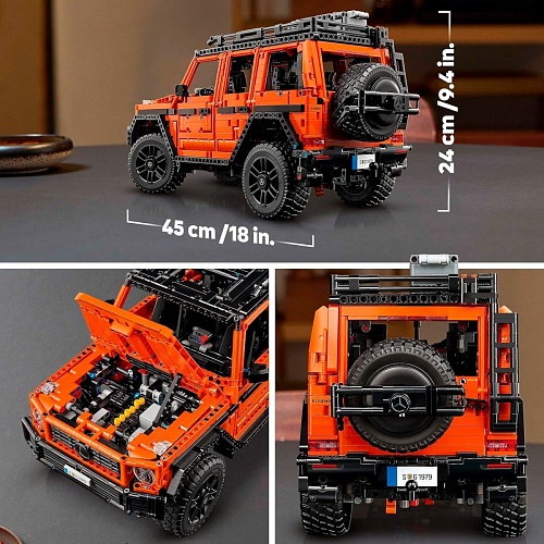 Модель оснащена робочим кермовим управлінням та піднятою підвіскою, що дозволяє відчути справжню міць позашляховика. Під капотом розташований 6-циліндровий рядний двигун з рухомими поршнями, який демонструє складність інженерних рішень Mercedes-Benz. Крім того, набір містить коробку передач з режимами руху вперед, нейтральним та заднім ходом, а також два диференціали з блокуванням, що додає моделі функціональності та реалістичності.