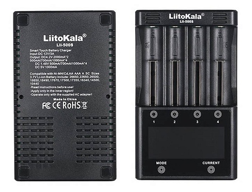 Зарядний пристрій LiitoKala Lii-500S простий, інтуїтивний в управлінні з яким вам не потрібно купувати кілька зарядних пристроїв - ви зможете заряджати різні форм-фактори акумуляторів і різного хімічного складу, одним зарядним пристроєм. Всі порти зарядного пристрою LiitoKala Lii-500S незалежні та контролюються індивідуально, що дає змогу заряджати акумулятори різного типу та хімічного складу одночасно. Наявність зрозумілої світлодіодної індикації спрощує роботу з LiitoKala Lii-500S. Зарядний пристрій автоматично розпізнає Ni-MH, Ni-Cd, Li-ion акумулятори та може заряджати їх різним струмом, він обирається автоматично залежно від кількості встановлених акумуляторів, а напруга обирається окремо залежно від типу акумулятора. Кожен слот самостійно відключається при досягненні максимального рівня заряду. Саме керування дуже інформативне і просте, керується однією кнопкою на передній панелі. Кожен канал управляється окремо і кожен має свою кнопку управління під номерами 1, 2, 3 і 4.