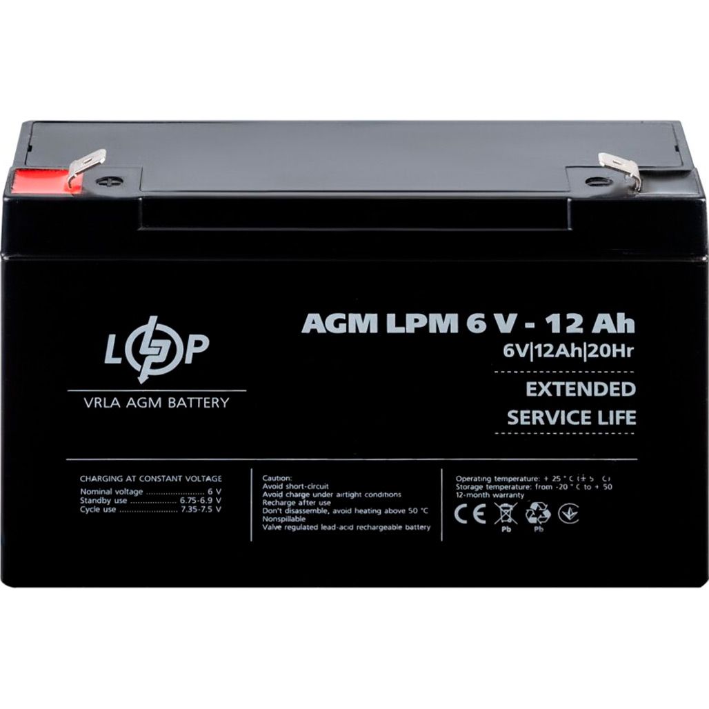 Акумулятор LogicPower AGM 6V (6V/12Ah/72Wh) (4159)