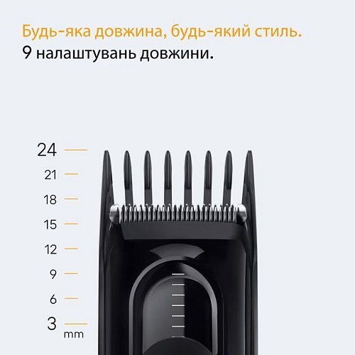 | Комплектація | Машинка для стрижки • зарядний пристрій • насадка 3-24 мм • щіточка для чищення • документація |