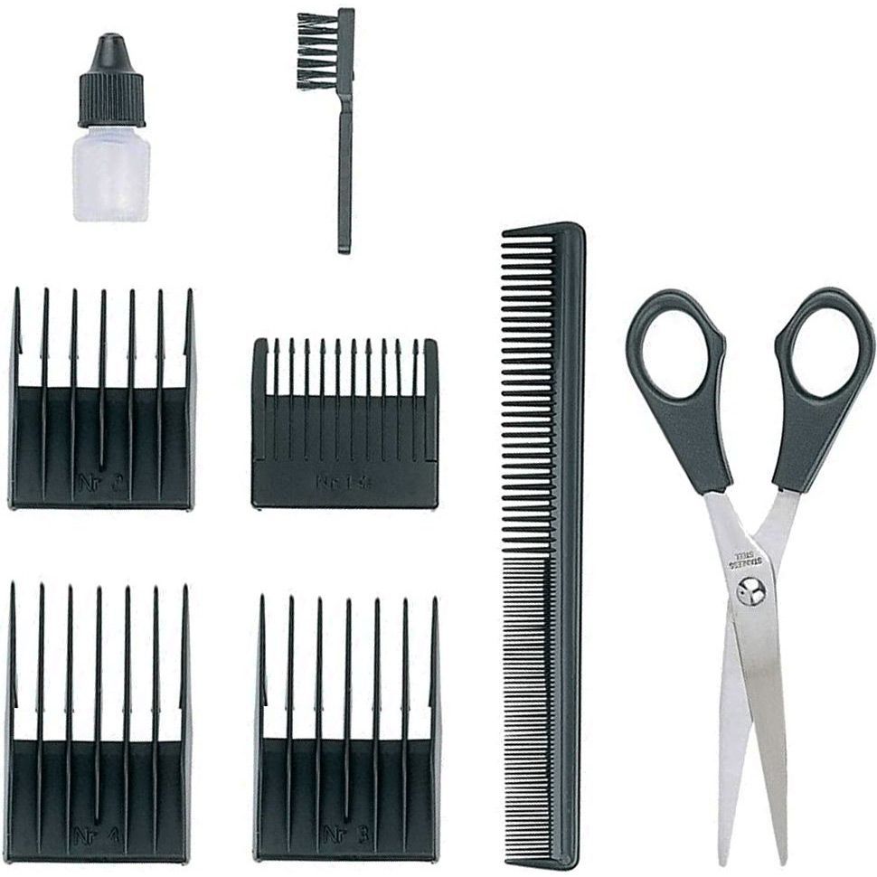 | Комплектація | Машинка для стрижки • захисний ковпачок • олія для змащування ножів • щіточка для чищення • насадки 4 шт (4.5, 6, 9, 14 мм) • ножиці • гребінець • документація |