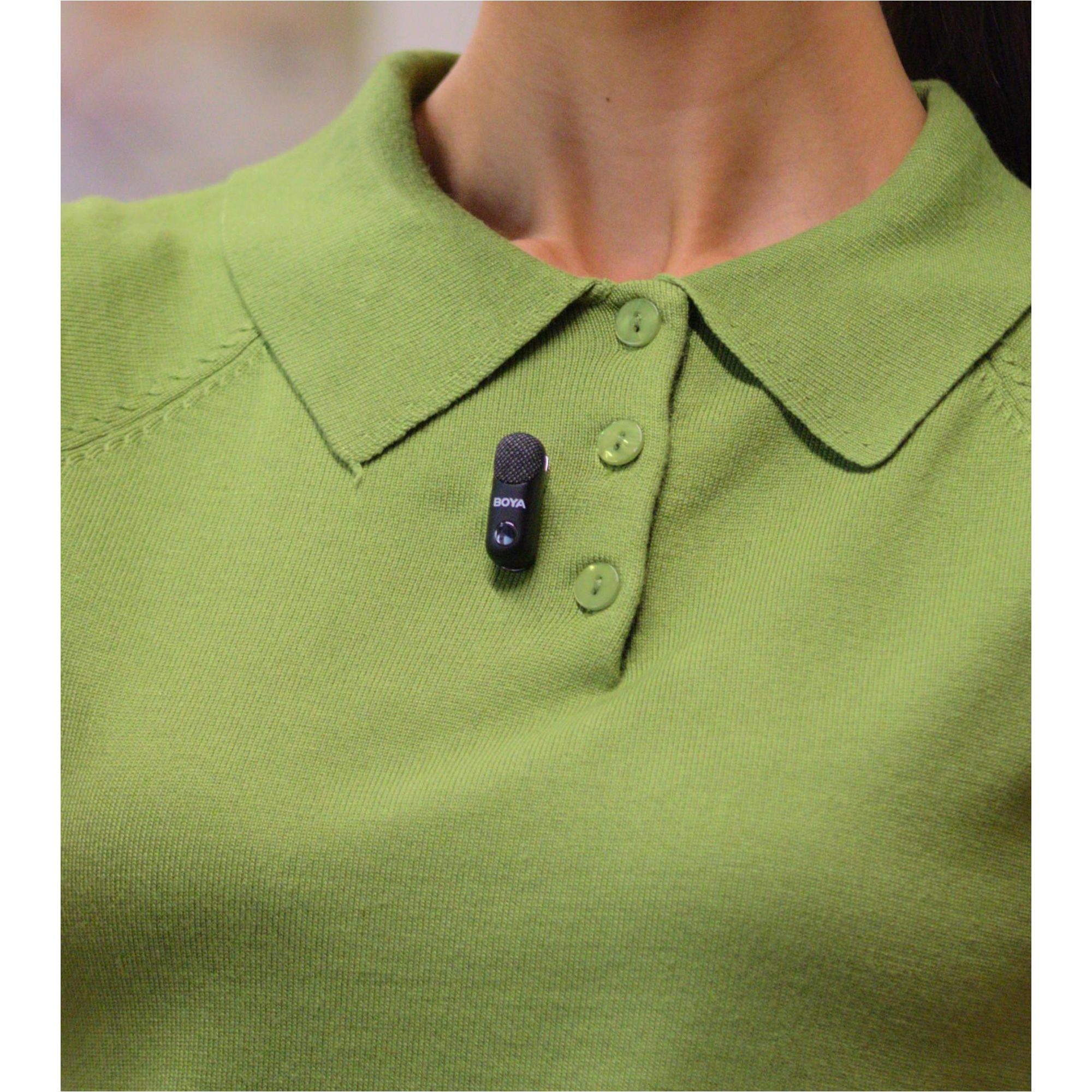 Мікрофон Clip-On є надзвичайно легким — вагою всього 7 грамів. Цей ультракомпактний мікрофон створений для комфортного використання протягом усього дня, не викликаючи дискомфорту. Він міцно фіксується на одязі, не тягне його і не заважає під час зйомки, забезпечуючи чистий звук без відволікань.
