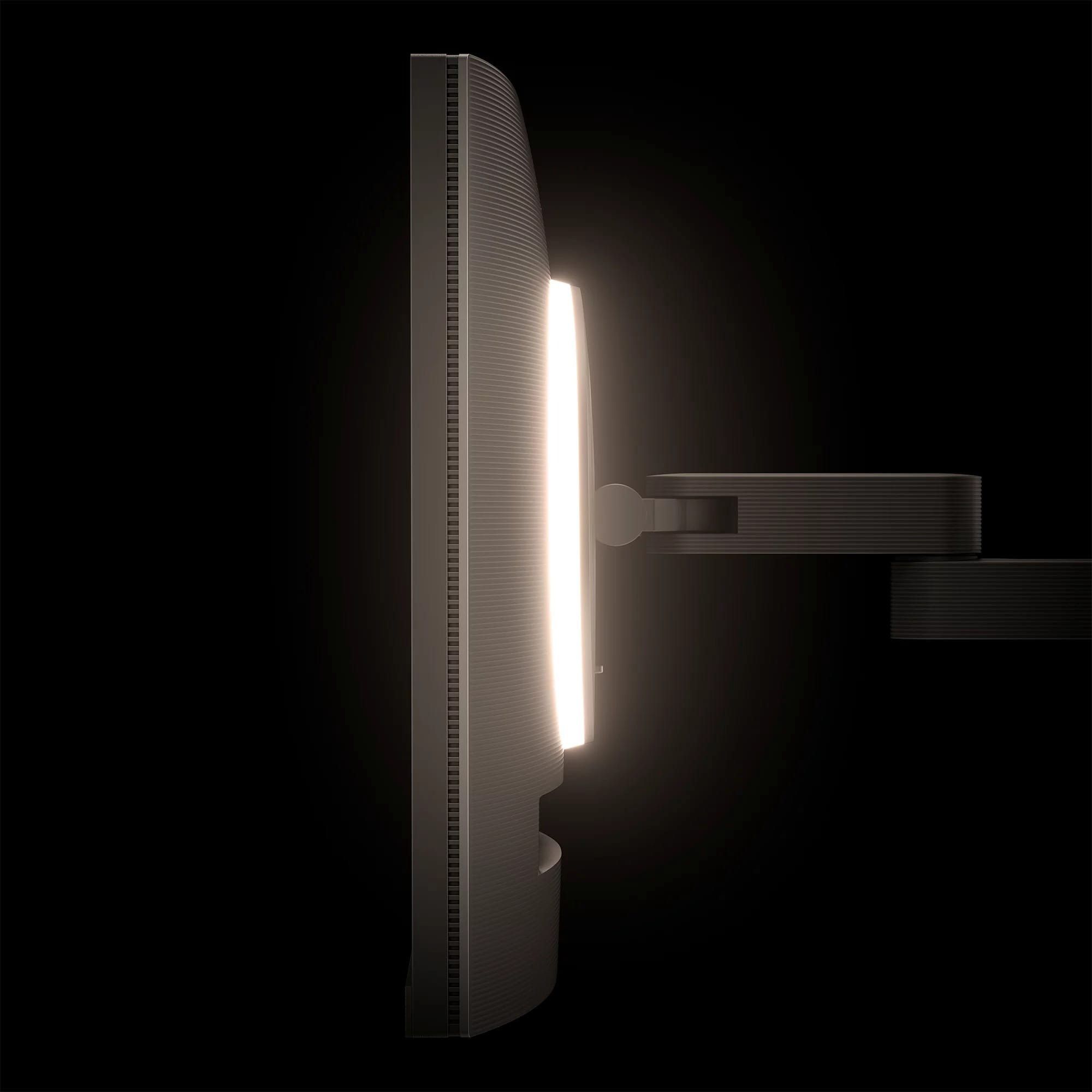 Система MoonHalo інтегрована у задню панель монітора та створює м’яке фонове освітлення для зниження візуального контрасту між екраном і навколишнім середовищем. Користувач може налаштовувати колірну температуру, рівень яскравості та режими світіння відповідно до власних умов роботи. Завдяки автоматичному затемненню на базі BI Gen2 підсвічування адаптується до змін освітлення в кімнаті, підтримуючи комфортний рівень світла та сприяючи збереженню концентрації протягом усього дня.