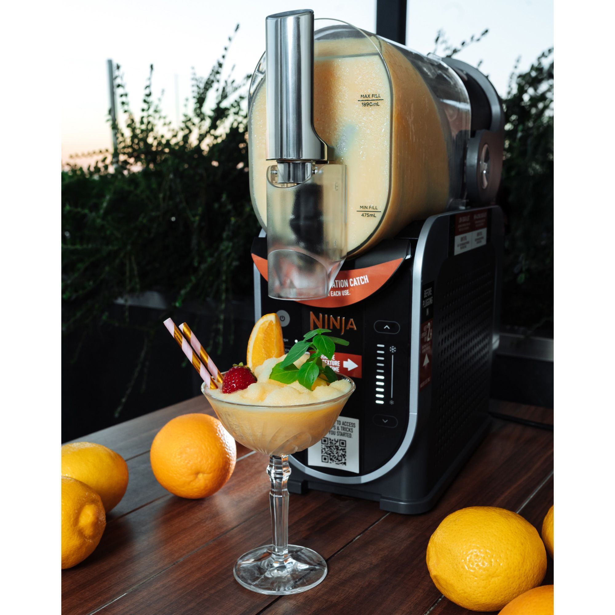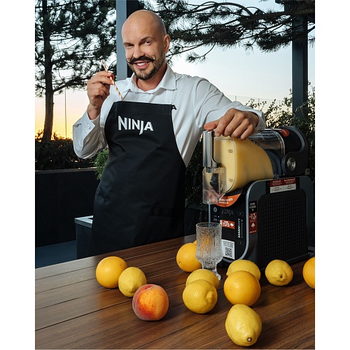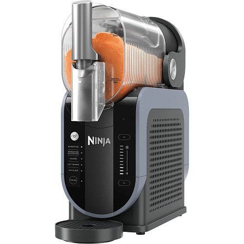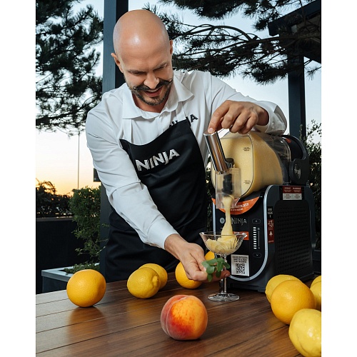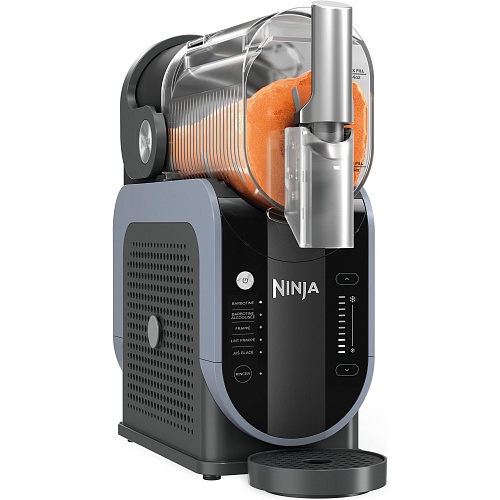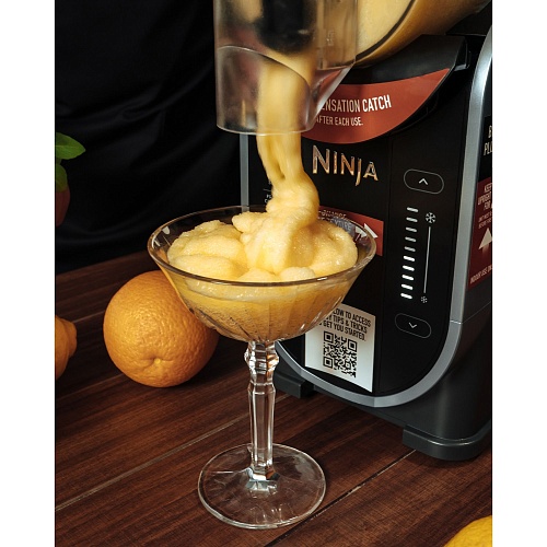 Догляд за пристроєм займає мінімум часу. Знімний резервуар і лопатки для перемішування легко виймаються і миються вручну або в посудомийній машині. Контейнер для конденсату запобігає утворенню вологи на поверхні столу, тому робоча зона залишається сухою навіть при активному використанні. У комплект входить книга рецептів, розроблена шефами Ninja, де зібрані варіанти фруктових слашів, свіжих сорбетів, густих молочних коктейлів і оригінальних кавових міксів. Експериментуйте з інгредієнтами, створюйте нові смаки і насолоджуйтеся ідеально збалансованими напоями у себе вдома.