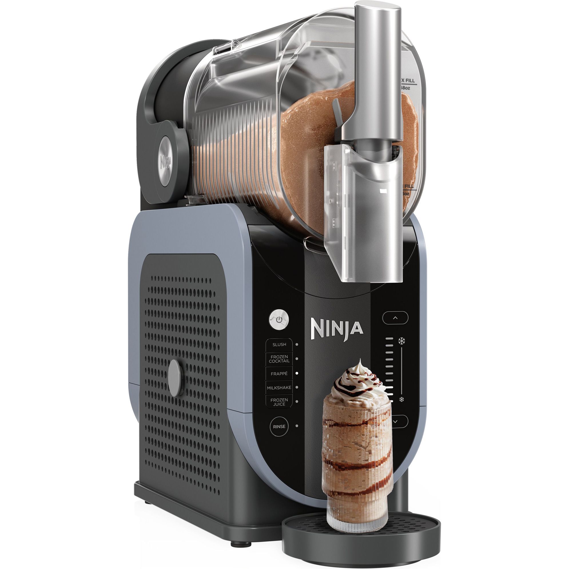 Сенсорний дисплей фризера Ninja SLUSHi FS301EU робить процес приготування максимально простим. Кілька дотиків — і пристрій починає роботу. Ви можете вибрати один з п'яти режимів: слаш, фрапе, молочний коктейль, заморожений сік або класичний коктейль. Налаштування температури дозволяє регулювати консистенцію — від м'якої і повітряної до щільної і насиченої. Лід подрібнюється рівномірно, напої виходять гладкими і однорідними без великих кристалів. Керуйте параметрами і створюйте улюблені рецепти з ідеальним балансом густоти і свіжості.