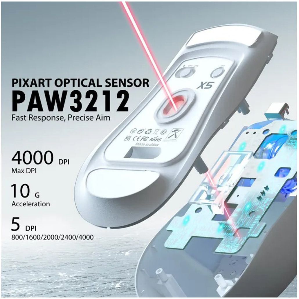У миші використовується оптичний сенсор PixArt PAW3212, який забезпечує стабільне та точне відстеження рухів. Максимальна чутливість досягає 4000 DPI, що дозволяє легко підібрати оптимальну швидкість курсора для різних завдань. Завдяки можливості перемикання рівнів DPI миша однаково добре підходить як для повсякденної роботи, так і для ігор різних жанрів. Точний сенсор допомагає плавно переміщати курсор без ривків і затримок, що особливо важливо для користувачів, які цінують швидку реакцію та контроль у динамічних ситуаціях. Додаткові кнопки забезпечують зручне керування функціями, дозволяючи швидко виконувати необхідні команди.