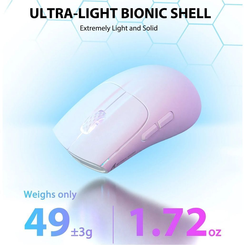 Бездротова миша Attack Shark X5 створена для користувачів, яким важлива швидкість, точність і комфорт під час роботи або гри. Її ультра легка конструкція вагою близько 49 г дозволяє легко переміщати пристрій по поверхні без зайвого навантаження на руку. Завдяки цьому миша добре підходить для тривалих ігрових сесій, роботи з графічними програмами або щоденного використання. Ергономічна симетрична форма підтримує різні типи хвату — palm, claw та fingertip, тому пристрій зручно лежить у руці незалежно від стилю використання. Легка конструкція також допомагає швидше реагувати на рухи, що особливо важливо у динамічних іграх. Корпус виконаний у стильному білому кольорі з сучасним мінімалістичним дизайном, який добре виглядає як у домашньому робочому місці, так і в ігровому сетапі.