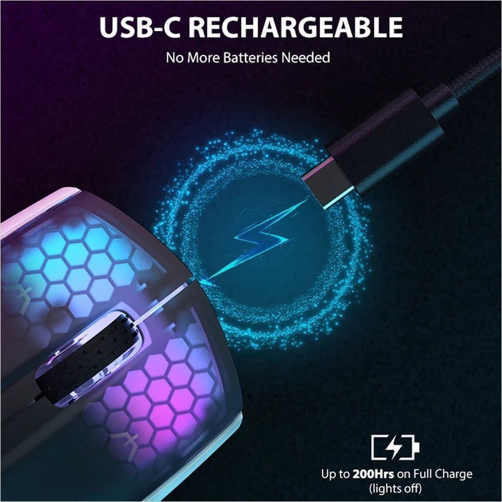 Attack Shark X5 оснащена вбудованим акумулятором, який забезпечує тривалу автономну роботу без частого підключення до зарядки. Завдяки енергоефективній конструкції пристрій може працювати багато годин без підзарядки, що робить його зручним для активного використання протягом дня. Миша підтримує швидке заряджання через сучасний роз’єм USB-C, що дозволяє швидко відновити заряд і продовжити роботу. Окремою особливістю моделі є стильне RGB-підсвічування, яке додає яскравості робочому місцю або ігровому простору. Поєднання сучасного дизайну, легкої конструкції та функціональності робить Attack Shark X5 практичним і універсальним аксесуаром для тих, хто цінує комфорт, продуктивність та стильний вигляд техніки.