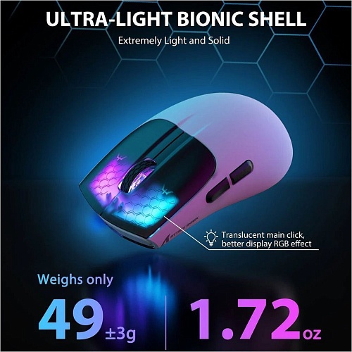 Бездротова миша Attack Shark X5 створена для користувачів, яким важлива швидкість, точність і комфорт під час роботи або гри. Її ультра легка конструкція вагою близько 49 г дозволяє легко переміщати пристрій по поверхні без зайвого навантаження на руку. Завдяки цьому миша добре підходить для тривалих ігрових сесій, роботи з графічними програмами або щоденного використання. Ергономічна симетрична форма підтримує різні типи хвату — palm, claw та fingertip, тому пристрій зручно лежить у руці незалежно від стилю використання. Легка конструкція також допомагає швидше реагувати на рухи, що особливо важливо у динамічних іграх. Корпус виконаний у стильному білому кольорі з сучасним мінімалістичним дизайном, який добре виглядає як у домашньому робочому місці, так і в ігровому сетапі.
