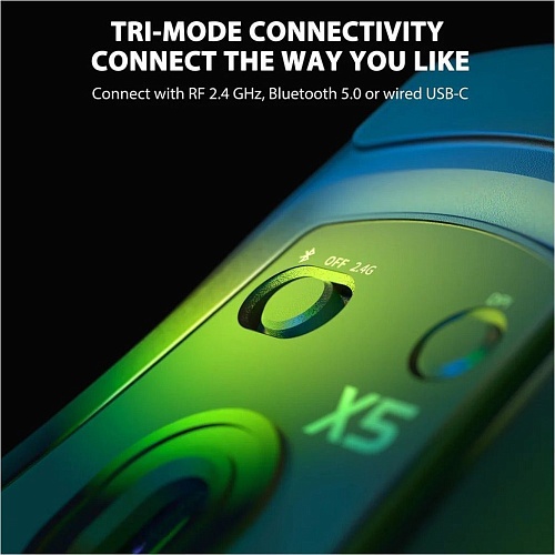 Attack Shark X5 підтримує одразу декілька варіантів підключення, що робить її універсальним рішенням для різних пристроїв. Мишу можна використовувати через бездротовий адаптер 2.4 ГГц, підключати через Bluetooth або працювати у дротовому режимі за допомогою кабелю USB. Така універсальність дозволяє легко перемикатися між комп’ютером, ноутбуком чи іншими пристроями без необхідності постійно підключати нове обладнання. Бездротовий режим забезпечує свободу рухів і відсутність зайвих кабелів на столі, а провідний режим стане корисним під час заряджання або коли потрібна максимально стабільна робота. Радіус бездротового підключення дозволяє комфортно користуватися мишею на відстані до 10 метрів від пристрою, що забезпечує зручність у різних умовах використання.
