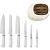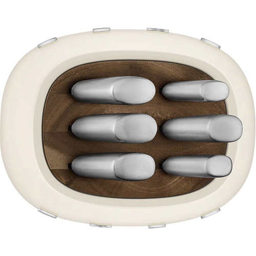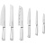 | Комплектація | Шеф-ніж 190 мм • ніж для хліба 190 мм • ніж Сантоку 180 мм • ніж для м'яса 150 мм • універсальний ніж 130 мм • ніж для овочів 80 мм • підставка для ножів • документація |
