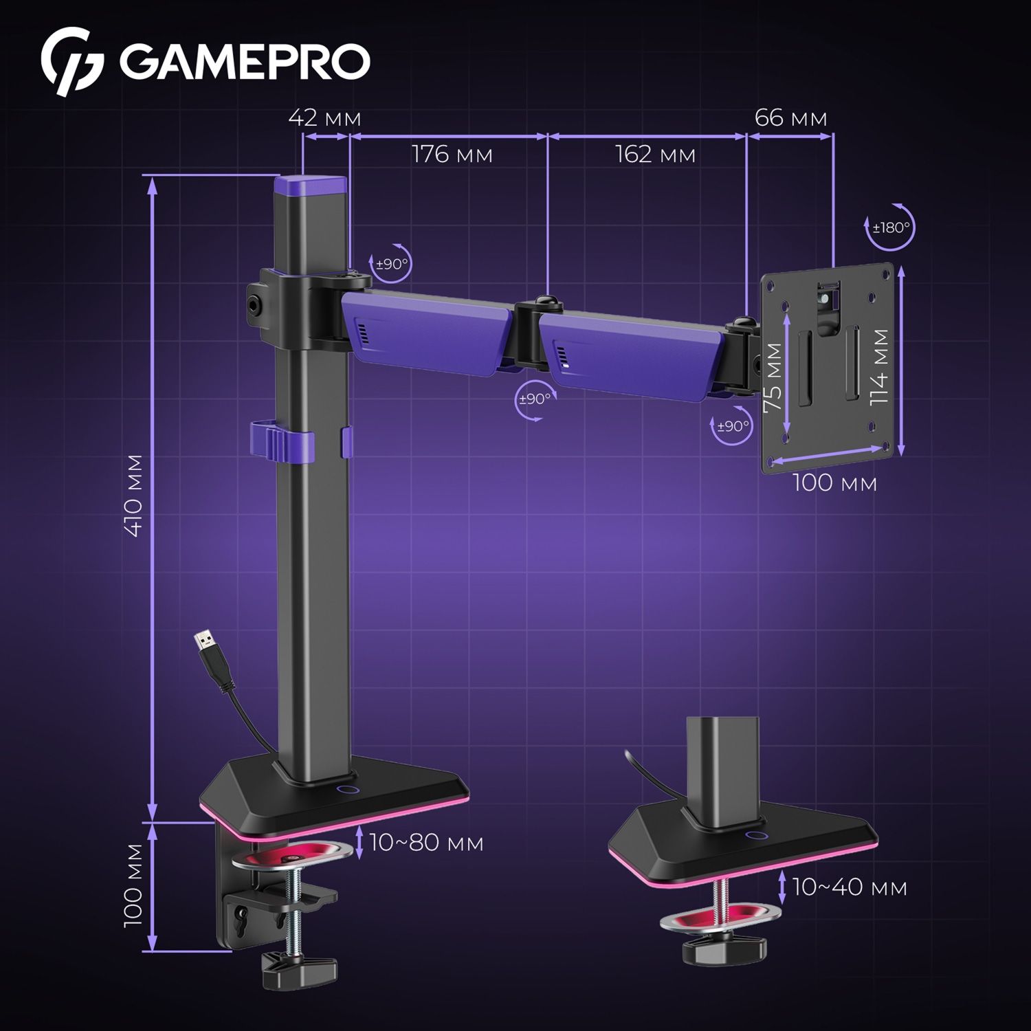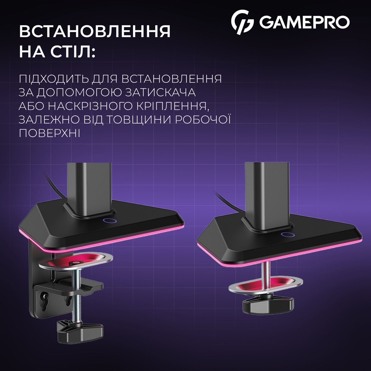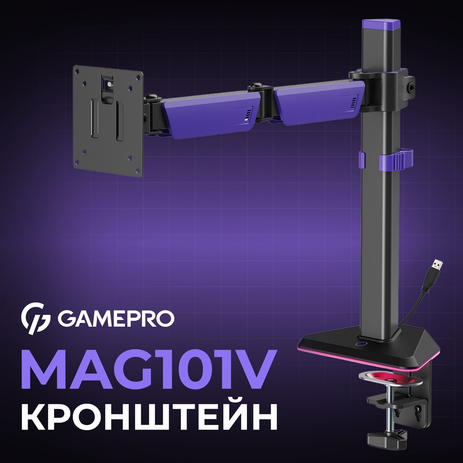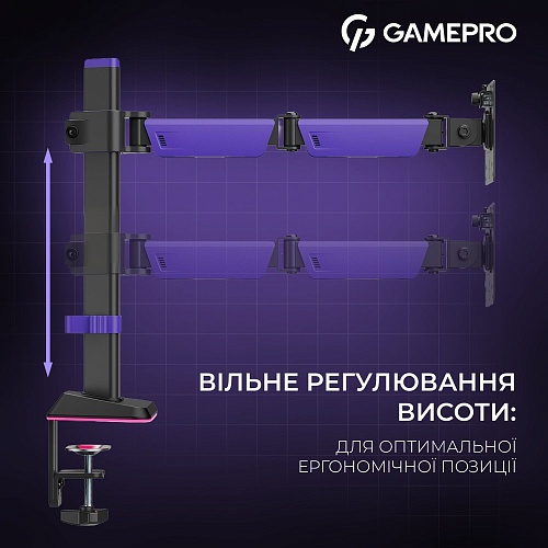 Настільне кріплення для монітора Gamepro MAG101V RGB 17"-40" Black/Violet