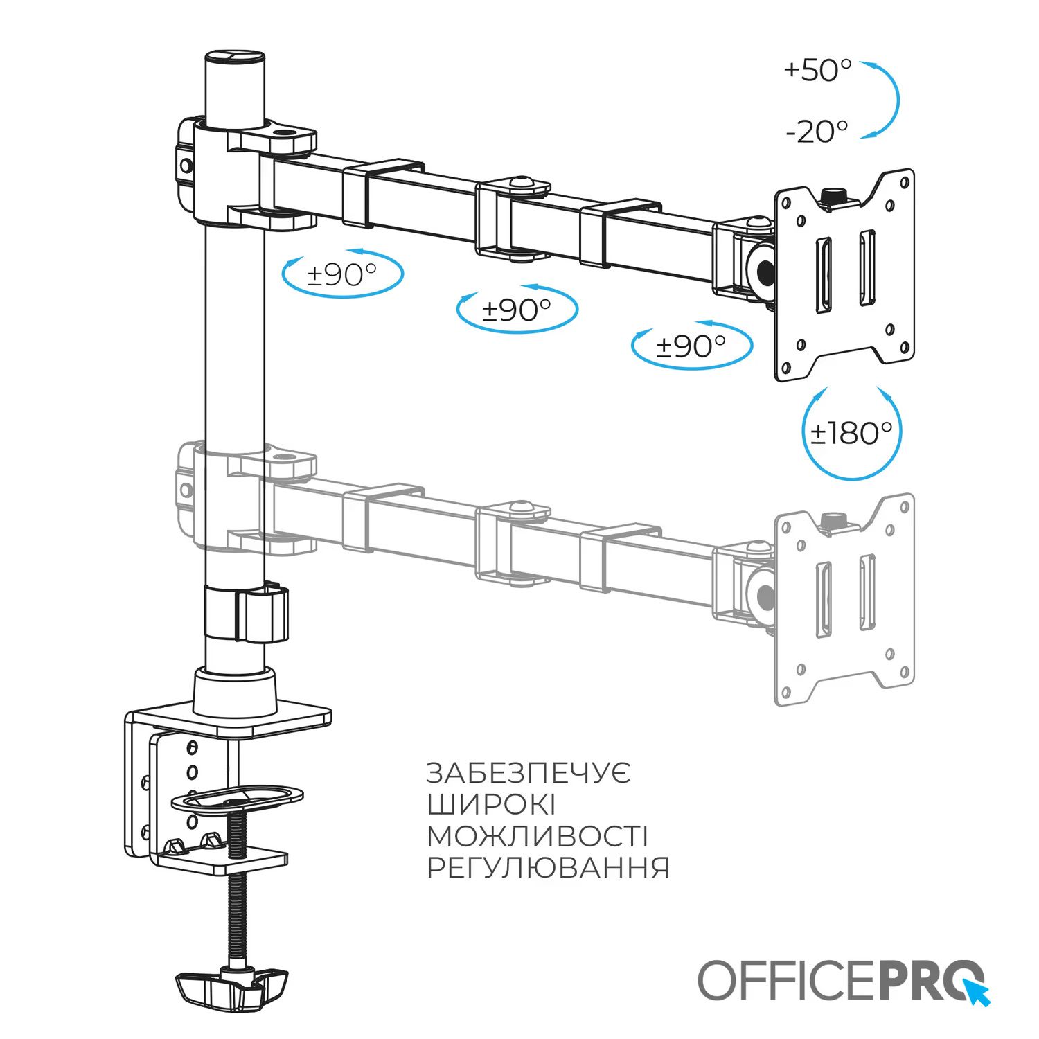 | Регулювання | Похило-поворотна, Нахил, Поворот, За висотою, За глибиною, Обертання |