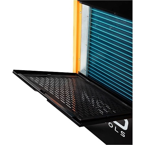 Neo Tools 90-162 оснащений міцними колесами і бічними ручками, що дозволяє легко переміщати пристрій між різними зонами і приміщеннями. Конструкція осушувача продумана для максимальної зручності при експлуатації на будівельних майданчиках, у виробничих цехах або складських приміщеннях, забезпечуючи швидку адаптацію до різних умов роботи.